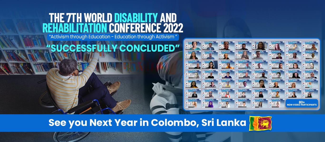 The 7th World Disability and Rehabilitation Conference 2022 (WDRC 2022) was held from 10th – 11th November 2022 in virtual platform. WDRC 2022 was organized under the theme “Activism through Education-Education through Activism”. The conference was organized by The International Institute of Knowledge Management (TIIKM), Sri Lanka.